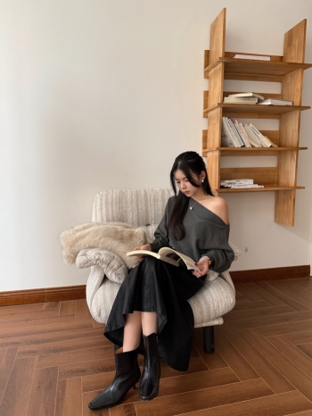 【Z829917】一字肩蝙蝠袖針織上衣