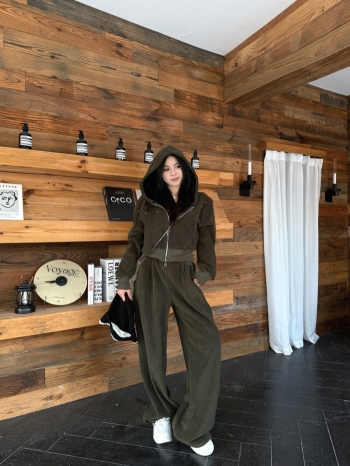 【Z829988】鉚釘加絨連帽休閒褲套裝