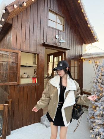 【Z830031】仿銀貂毛復古皮紋騎士外套