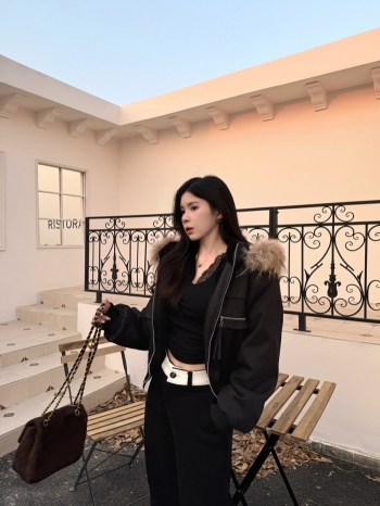 【Z830064】工裝口袋內絨毛領連帽外套
