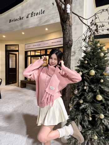 【Z830025】設計感可拆卸圍巾針織毛衣外套