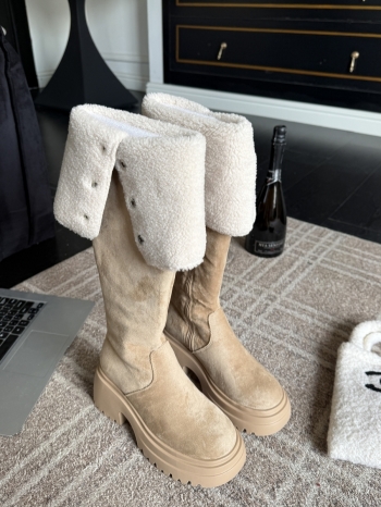 【Z830086】兩穿羊羔毛厚底過膝粗跟長靴