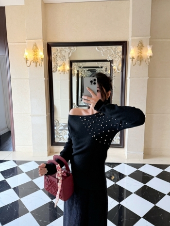 【Z830074】氣質重工鑲鑽圓領長袖針織衫