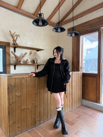 【Z830079】休閒立領拉鍊外套短裙套裝
