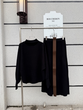 【Z830096】露脖蝙蝠袖針織長裙套裝(附腰帶)