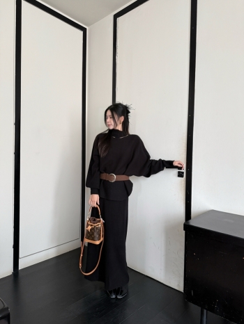 【Z830096】露脖蝙蝠袖針織長裙套裝(附腰帶)