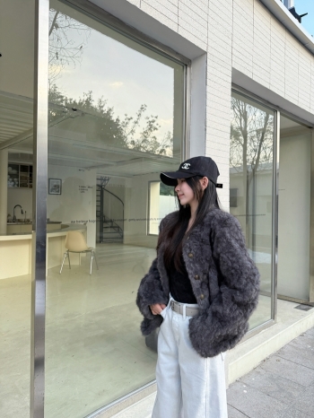 【Z830107】高級感圓領單排釦毛絨絨外套