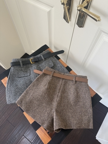 【Z830123】小香風假兩件編織毛呢翻蓋短褲
