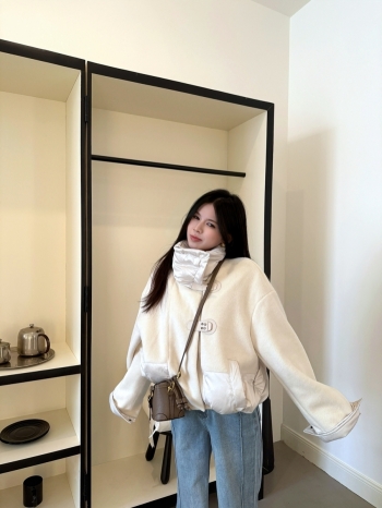 【Z830146】毛呢拼接立領釘釦羽絨外套