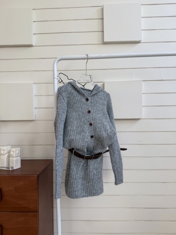 【Z830178】連帽針織排釦收腰設計連身裙