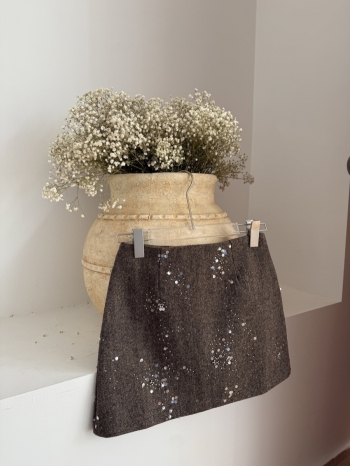 【Z830180】法式重工毛呢亮片釘珠短裙