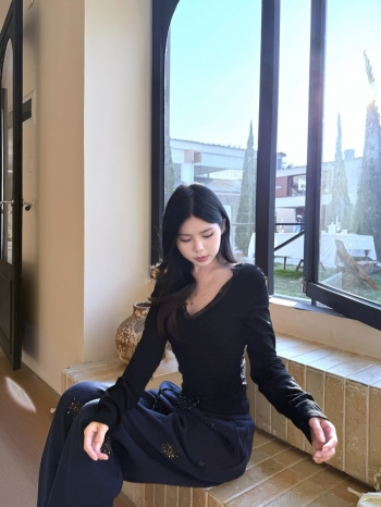 【Z830166】蕾絲拼接V領加絨露背長袖