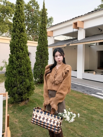 【Z830179】氣質溫柔木耳邊娃娃領毛衣