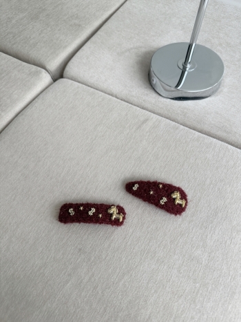 【Z830242】氛圍感紅色毛絨金馬髮夾(二入組)