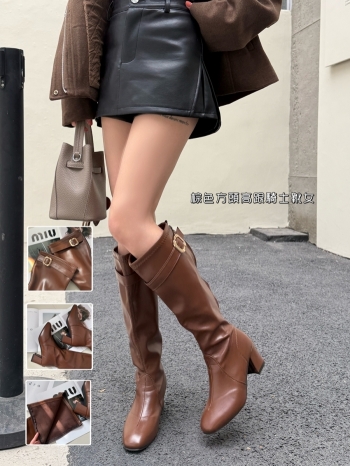 【Z830200】英倫風復古皮帶釦方頭長靴
