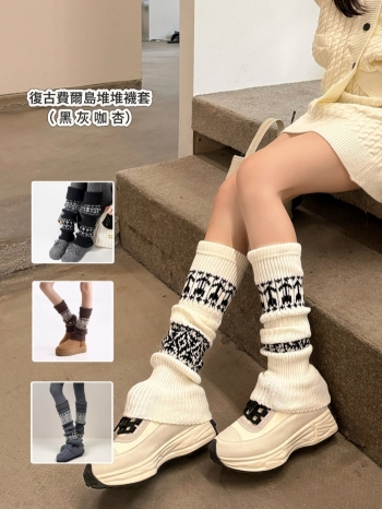 【Z830249】費爾島針織提花堆堆襪套(四入組)