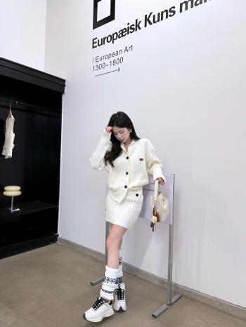 【Z830268】甜心翻領雙口袋針織短裙套裝