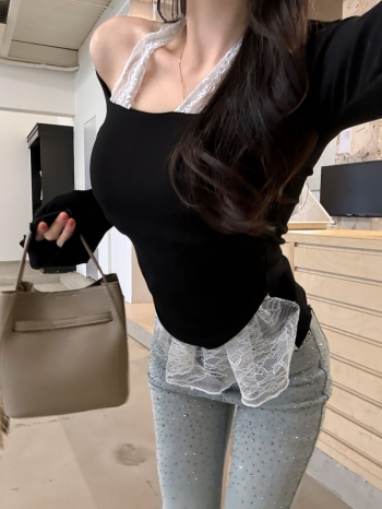 【Z830274】純欲甜辣蕾斯掛脖假兩件長袖