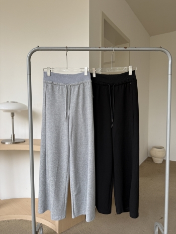 【Z830354】高腰垂墜鬆緊闊腿棉褲