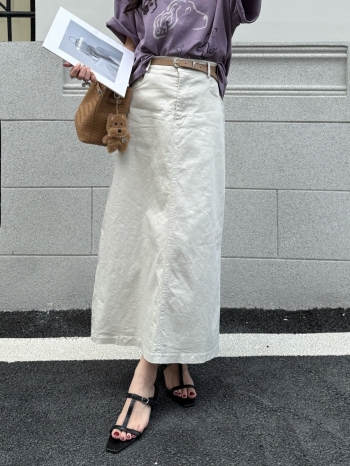【Z830384】韓系簡約附皮帶後開叉牛仔長裙