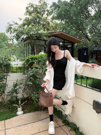 【Z830463】褶皺收腰帶胸墊背心連身裙