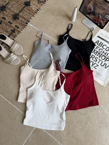 【Z830333】大U領帶胸墊細肩美背背心