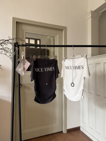 【Z830441】字母印花褶皺收腰短袖(附項鍊)