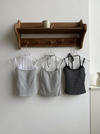 【Z830501】掛脖綁帶假兩件條紋背心