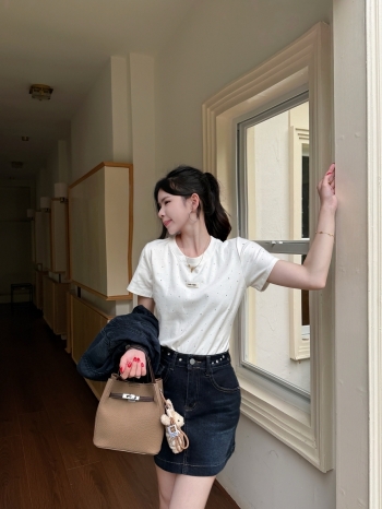 【Z830420】簡約休閒燙鑽圓領短T
