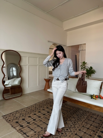 【Z830515】休閒百搭條紋排釦針織罩衫