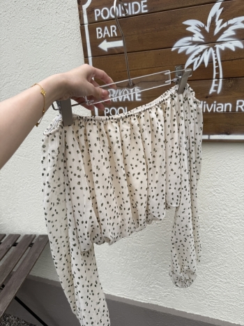 【Z830561】法式一字肩波點燈籠袖襯衫