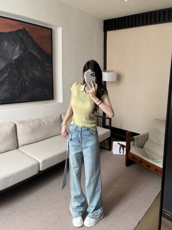 【Z830495】翻領單釦彈力羅紋針織短袖