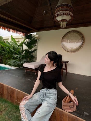 【Z830538】法式溫柔風斜肩蕾絲蝴蝶結上衣