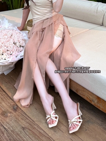 【Z830571】絕美不規則荷葉邊蕾絲雪紡裙