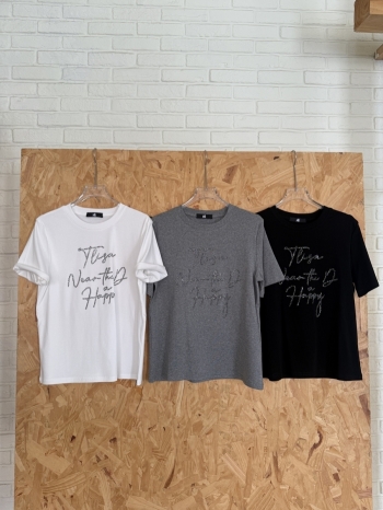 【Z830645】重工燙鑽草寫字母印花圓領短T