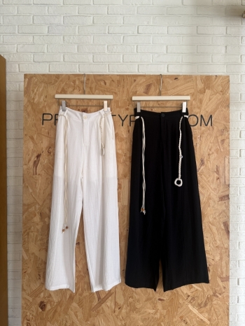 【Z830649】鬆弛感亞麻休閒闊腿褲(附編織腰鍊)