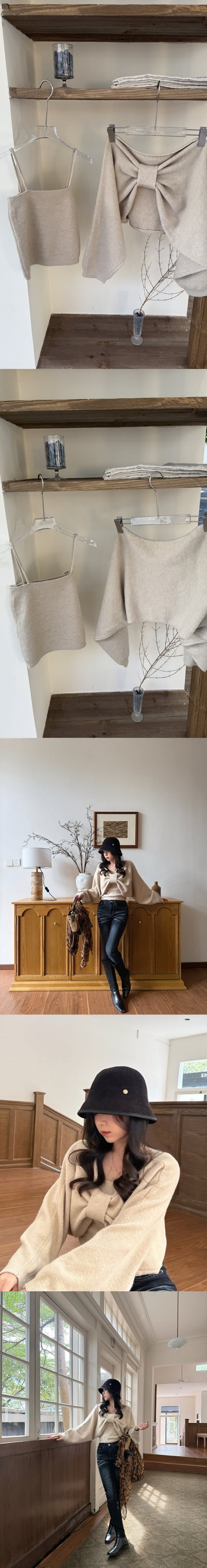【Z829832】甜美背心+露肩蝴蝶結罩衫