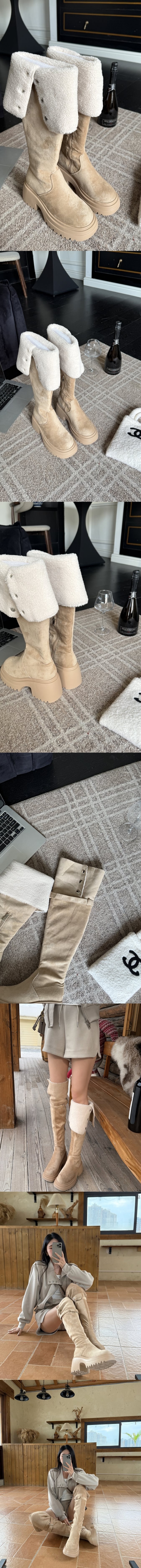 【Z830086】兩穿羊羔毛厚底過膝粗跟長靴