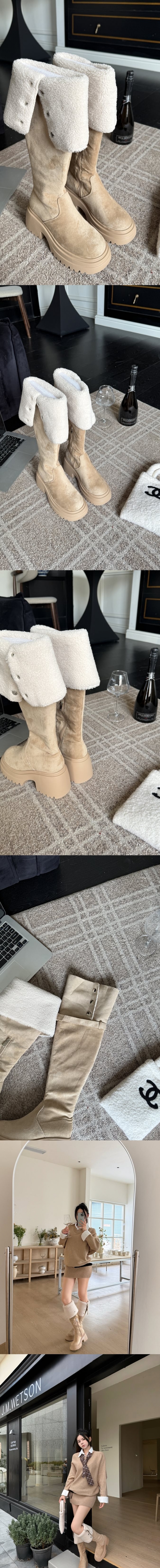 【Z830086】兩穿羊羔毛厚底過膝粗跟長靴