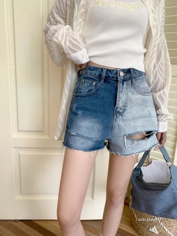【Z827334】撞色拼接牛仔短褲
