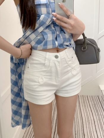 【Z827355】花紋車線彈性牛仔短褲