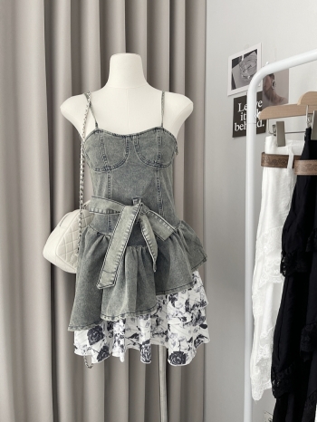 【Z828851】甜酷風辣妹顯瘦玫瑰牛仔吊帶裙