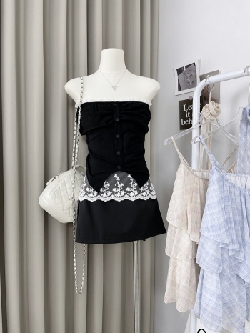 【Z828945】一字肩蕾絲花邊上衣短裙套裝