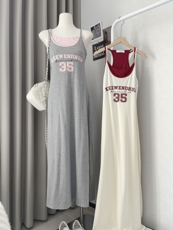 【Z829026】美式字母休閒假兩件撞色背心裙