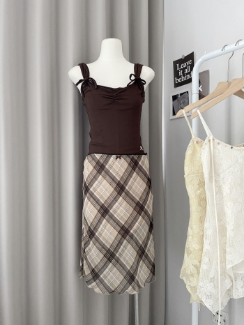 【Z829086】法式輕奢感斜裁格紋雪紡半裙