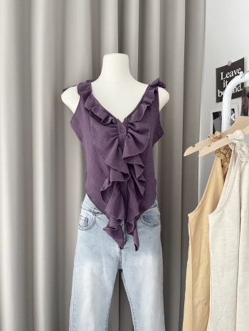【Z829128】紫色荷葉邊V領露背吊帶背心