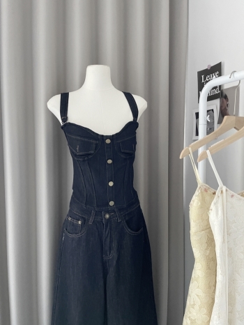 【Z829102】美式辣妹復古收腰牛仔背心