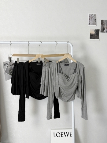【Z829220】不規則蕩領背心+百褶裙開襟衫