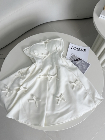 【Z829236】高級緞面抹胸蝴蝶結甜美短洋裝