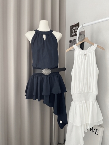 【Z829235】不規則掛脖露肩連身裙(附腰帶)